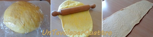 Quando sarà nuovamente aumentato di volume, stendere l'impasto con il